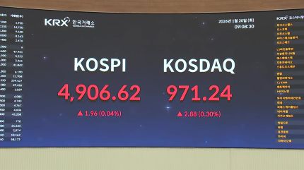 조금 전 약보합으로 출발은 했는데 현장으로 가보겠습니다. 현재 코스피와 코스닥 모두 빨간불을 켜고 있습니다. 코스피는 0. 09% 내린 4900포인트로 개장했고요. 지금은 하락 반전하면서 4904포인트를 지나가고 있습니다. 5000포인트까지는 100포인트가 남지 않은 상황인데 어제는 현대차가 16% 넘게 폭등하면서 지수 전체를 끌어올렸습니다. 그린란드 갈등으로 변수가 커져 있는 상황에서도 코스피는 계속 강세를 보이고 있는데요. 현재 4905포인트로 다시 빨간불을 켰습니다. 그리고 코스닥도 보겠습니다. 971포인트를 지나가고 있는데 계속해서 상승폭을 키워나가고 있는 상황입니다. 뉴욕증시는 오늘 휴장했는데 유럽증시가 급락한 상황인데요. 오늘 우리 시장에는 어떤 영향을 줄지 주목됩니다. 원달러 환율 상승 압력은 여전합니다. 오늘도 0. 8원 오른 1474. 5원으로 개장했습니다. 개장 소식은 이어지는 뉴스에서 전해 드리겠습니다.
