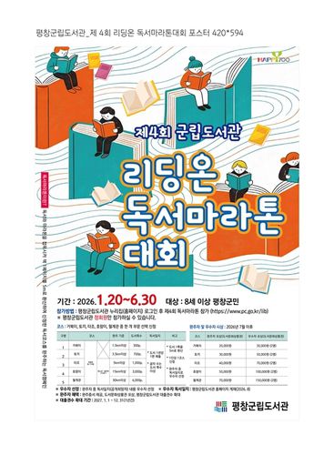 평창군립도서관은 종목을 완주한 군민에게 독서 마라톤 완주증과 상품을 제공할 예정이며, 다음 해인 2027년에 도서 대출 권수를 기존 5권에서 10권으로 확대하는 혜택도 함께 제공한다. 또 심사를 거쳐 우수자 10명을 선정해 상을 수여한다.