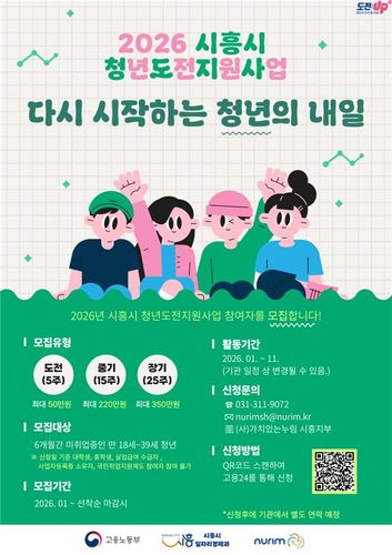 참여를 희망하는 청년은 연중 상시 시흥시청 누리집 내 공고문을 참고하면 되고, 자세한 사항은 시흥시청 일자리경제과(031-310-6290) 또는 (사)가치있는누림시흥지부(031-311-9072)로 문의하면 된다.