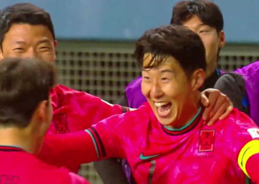 손흥민이 14일 볼리비아전에서 프리킥으로 골을 넣고 기뻐하고 있다. [사진=쿠팡플레이 중계화면 캡처] |