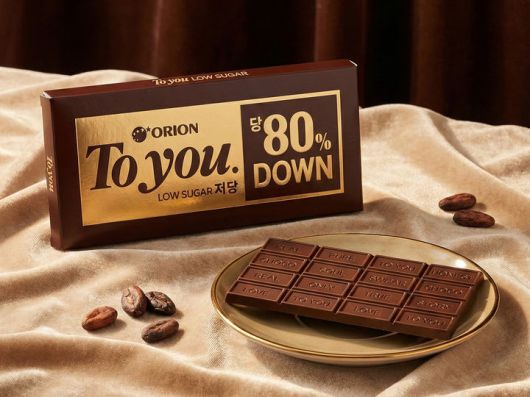 오리온은 시중 판매되는 초콜릿의 평균 당 함량에 비해 80% 이상 낮은 수준이라고 설명했다.
