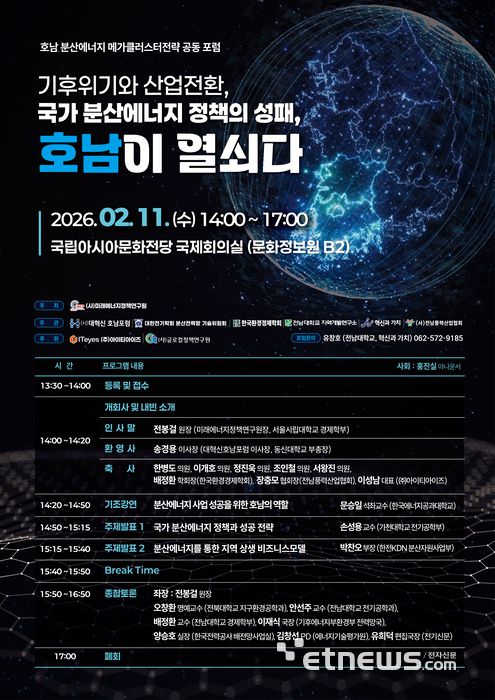 기후위기 대응과 인공지능(AI) 산업 확산에 따른 전력 수요 급증으로 분산에너지의 중요성이 커지는 가운데, 호남권을 국가 에너지 정책의 핵심 거점으로 육성하기 위한 논의의 장이 마련된다.