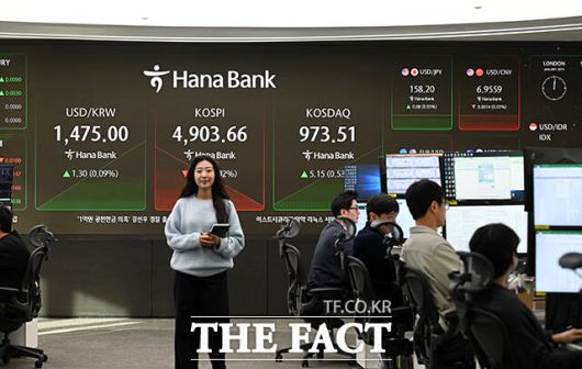 [더팩트ㅣ서예원 기자] 코스피가 연일 신고가를 경신한 뒤 반락하고 있는 20일 오전 서울 중구 하나은행 딜링룸 전광판에 지수가 표시되고 있다.