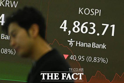 전날 코스피는 12거래일 연속 올라 사상 처음 4900선을 돌파했으나 하루 만에 다시 4900선 아래로 내려간 상태다.