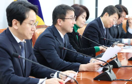 [이데일리 노진환 기자] 한병도 더불어민주당 원내대표가 20일 서울 여의도 국회에서 열린 원내대책회의에서 모두발언을 하고 있다.