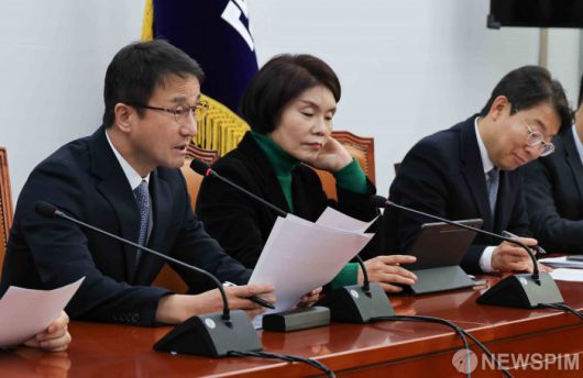 [서울=뉴스핌] 윤창빈 기자 = 한병도 더불어민주당 원내대표가 20일 서울 여의도 국회에서 열린 원내대책회의에서 모두발언을 하고 있다. 2026.01.20 pangbin@newspim.com
