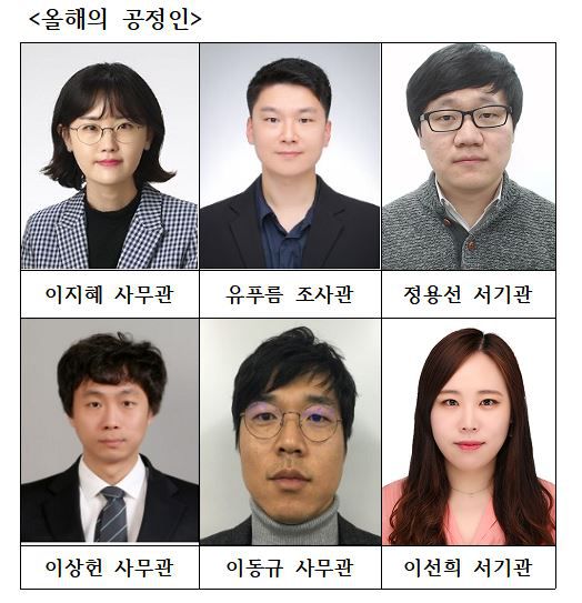 공정위는 지식산업감시과 이지혜 사무관, 유푸름 조사관과 정용선 서기관(기업결합과), 이상헌 사무관(경제분석과), 이동규 사무관(조사총괄담당관실), 이선희 서기관(심판총괄담당관실)을 '2025년 올해의 공정인'으로 선정했다고 20일 밝혔다.