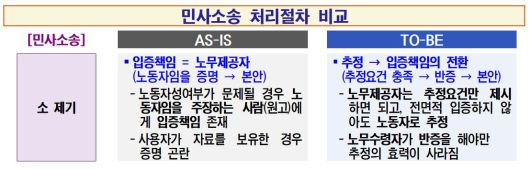 근로자 추정 제도가 도입되면 달라지는 민사소송 처리 절차. /고용노동부 제공 |