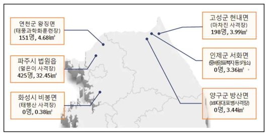 당정은 소음 영향도 조사를 통해 군 사격장 8곳을 소음대책지역으로 신규 지정했다. 지정·고시 예정 지역은 △파주시 법원읍 멀은이 사격장 △고성군 현내면 마차진 사격장 △연천군 왕징면 태풍과학화훈련장 △양구군 방산면 포병사격장 △화성시 비봉면 태행산 사격장 △인제군 서화면 표적지 등 3개소다.