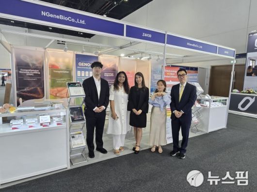 [서울=뉴스핌] 김신영 기자 = MEDLAB 2025 엔젠바이오 부스에서 관계자들이 기념촬영을 하고 있다. [사진=엔젠바이오] 2025.02.05 sykim@newspim.com |