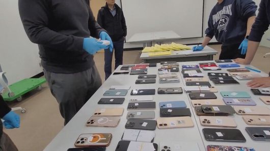 프놈펜 범죄단체 조직원들로부터 압수한 휴대전화 등 압수물. 경기북부경찰청 제공 영상 갈무리 |
