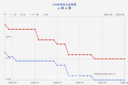 ‘사실상 기준금리’로 취급되는 중국의 LPR은 매월 20개 주요 상업은행의 금리를 취합해 산출한다. 통상 1년물은 신용 대출 등 일반 대출, 5년물은 주택담보대출 등 금리 산정의 기준이 된다.