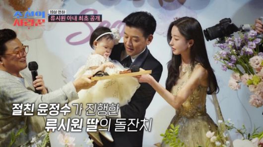 19일 방송된 TV CHOSUN '조선의 사랑꾼'에서는 지난 윤정수의 결혼식에서 부부 동반 하객으로 영상에 잡혀 무려 '283만 뷰'를 기록했던 류시원 부부가 방송 최초로 정식 출연했다. 류시원은 딸의 돌잔치를 위해 '32년 지기' 절친 윤정수에게 MC를 부탁했고 "신혼여행까지 미뤄가며 돌잔치 MC를 봐준 게 너무 고마웠다"고 감사를 전했다. 이날은 윤정수 부부와 동반으로 식사하는 날이 공개됐다. '19세 연하' 미모의 수학강사 아내가 등장하자, 지켜보던 정이랑은 "저렇게 예쁘신데, 공부까지 잘하신다고? 다 가졌네!"라며 감탄을 쏟아냈다. 류시원 부부는 윤정수 부부에게 전해줄 깜짝 꽃바구니 선물을 준비했다. 류시원은 아내를 위해 앞치마를 직접 매 주고 아내가 원예 가위에 다칠까 안절부절 못하는 등, '다정한 남편의 정석'을 보여주었다.