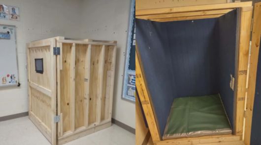 앞서 지난해 12월, 이 학부모는 아들의 학교에서 사람이 들어갈 수 있는 크기의 나무 상자를 목격했습니다.
