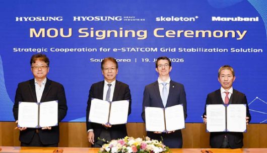 [아이뉴스24 이한얼 기자]효성중공업은 독일 스켈레톤(Skeleton Technologies) 및 일본 마루베니(Marubeni)와 ‘e-STATCOM 개발 및 사업 협력’을 위한 업무협약(MOU)을 체결했다고 20일 밝혔다.