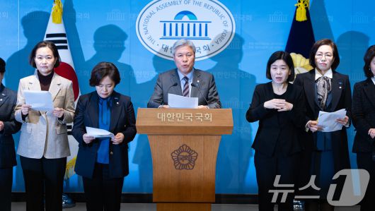 (서울=뉴스1) 유승관 기자 = 서왕진 조국혁신당 원내대표를 비롯한 의원단이 20일 서울 여의도 국회 소통관에서 '중수청·공소청법 민주당에게 묻는다' 긴급 기자회견을 하고 있다. 2026.1.20/뉴스1