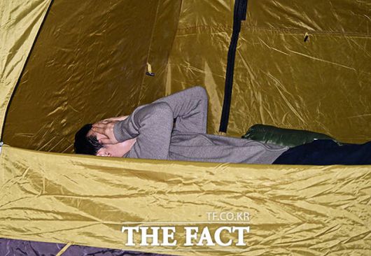장동혁 국민의힘 대표가 20일 오전 서울 여의도 국회 로텐더홀에서 엿새째 단식을 이어가고 있다. /국회=배정한 기자 |
