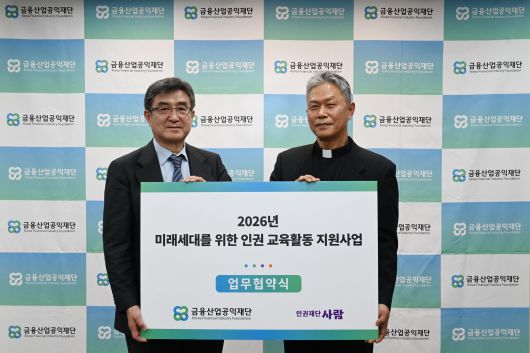 금융산업공익재단은 인권재단 사람(이하 인권재단)과 지난 19일 재단 대회의실에서 '미래세대를 위한 인권 교육활동 지원사업' 협약을 체결했다고 20일 밝혔다. 이번 사업은 '제2회 금융산업공익재단 사업공모전'을 통해 선정된 신규 사업으로, 미래사회 핵심 의제에 전문성을 가진 인권단체의 교육 역량을 강화해 이를 미래세대 교육으로 확산하는 데 목적이 있다.