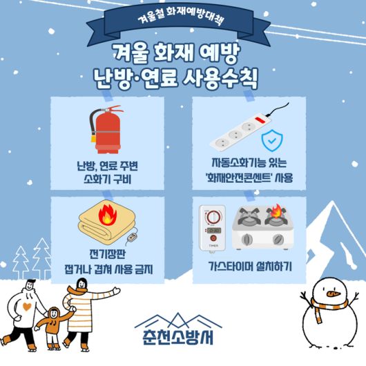 [스포츠서울ㅣ춘천=김기원기자]강원특별자치도 춘천소방서(서장 용석진)는 겨울철 난방기기와 연료 사용이 증가함에 따라 화재 예방을 위한 안전수칙 준수를 당부한다고 20일 밝혔다.