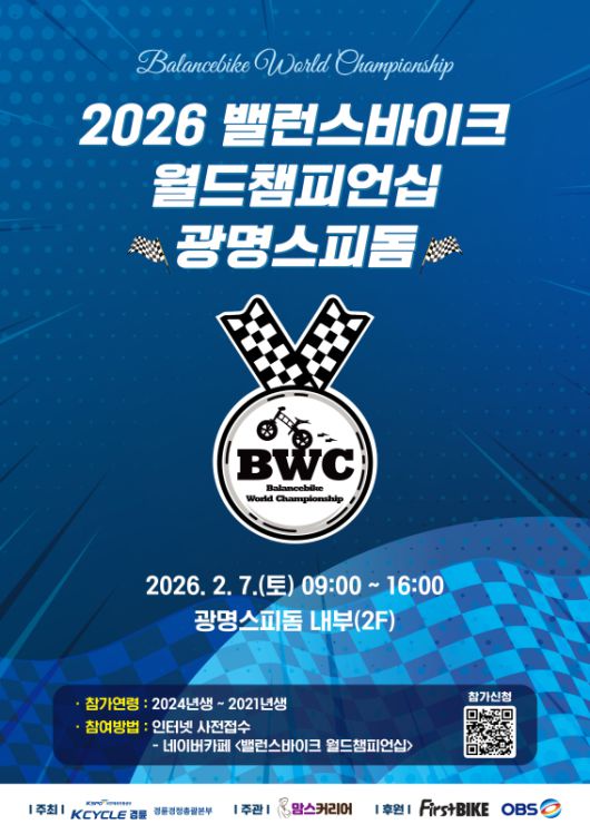 국민체육진흥공단 경륜경정총괄본부가 주최하고 맘스커리어가 주관하는 '2026 밸런스바이크 월드 챔피언십'이 오는 2월 7일 광명스피돔 내부 2층 스피돔 라운지에서 개최된다.