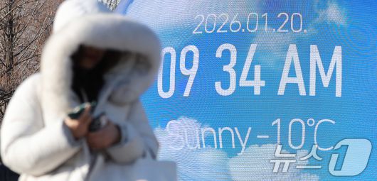 (서울=뉴스1) 박지혜 기자 = 20일 서울 송파구 미디어아트 조형물인 ‘더 스피어’에 표시된 실시간 온도가 영하 10도를 나타내고 있다. 기상청은 당분간 북쪽에서 찬 공기가 내려오면서 낮 기온도 영하권에 머무는 추운 날씨가 이어질 것으로 전망했다. 2026.1.20/뉴스1