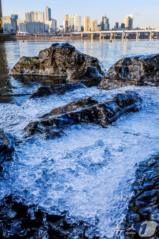 영하권 날씨에 꽁꽁 얼어붙은 한강