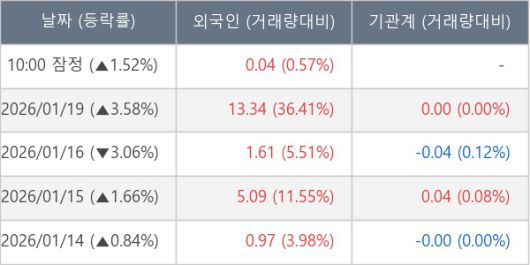 [표] 외국인ㆍ기관 순매매량 (단위 만주)