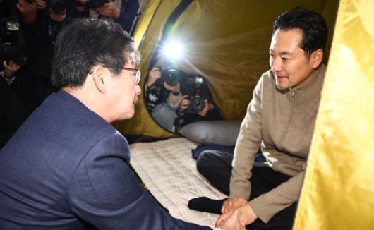 유 전 의원은 국회 로텐더홀에 있는 장 대표의 단식농성장에서 기자들과 만나 “장 대표께서 많이 힘들어한다는 얘기를 듣고 걱정이 돼서 왔다. 빨리 단식을 끝낼 수 있게 되면 좋겠고, 건강을 해치지 않았으면 좋겠다”고 말했다.