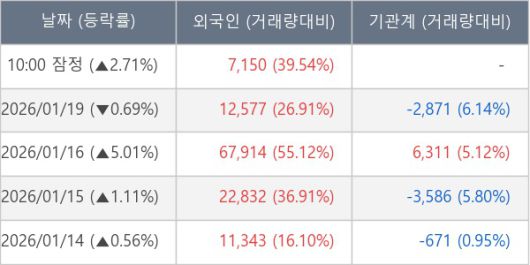 [표] 외국인ㆍ기관 순매매량 (단위 주)
