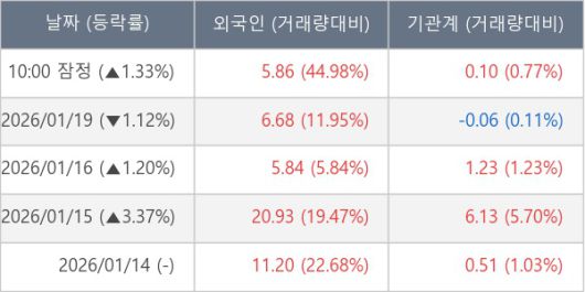 [표] 외국인ㆍ기관 순매매량 (단위 만주)