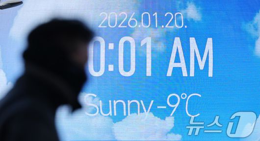 (서울=뉴스1) 박지혜 기자 = 20일 서울 송파구 미디어아트 조형물인 ‘더 스피어’에 표시된 실시간 온도가 영하 9도를 나타내고 있다. 기상청은 당분간 북쪽에서 찬 공기가 내려오면서 낮 기온도 영하권에 머무는 추운 날씨가 이어질 것으로 전망했다. 2026.1.20/뉴스1