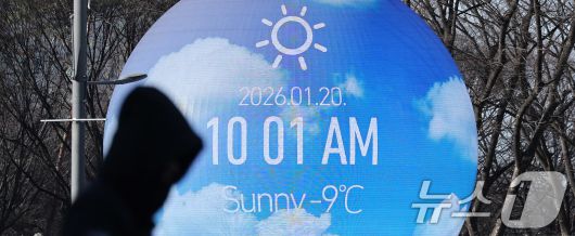 (서울=뉴스1) 박지혜 기자 = 20일 서울 송파구 미디어아트 조형물인 ‘더 스피어’에 표시된 실시간 온도가 영하 10도를 나타내고 있다. 기상청은 당분간 북쪽에서 찬 공기가 내려오면서 낮 기온도 영하권에 머무는 추운 날씨가 이어질 것으로 전망했다. 2026.1.20/뉴스1