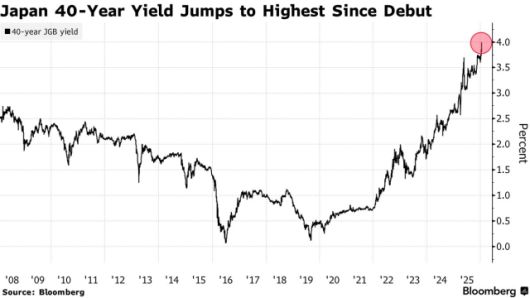 확장 재정을 내건 다카이치 내각의 출범과 맞물려 일본 채권은 주요 선진국 수준을 넘어서고 있다. 일본 30년물 국채 금리는 이미 독일 30년물(약 3.55)보다 높은 상황이다.