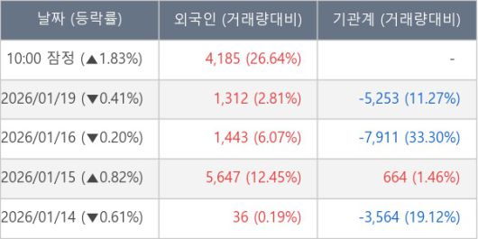 [표] 외국인ㆍ기관 순매매량 (단위 주)