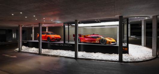 (왼쪽부터)스위스 다보스에 위치한 아메론 호텔에 전시된 ‘GV60 마그마’와 ‘GMR-001 하이퍼카’ [사진=현대차] |