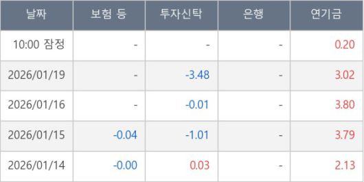 [표] 주요 기관별 순매매량 (단위 만주)