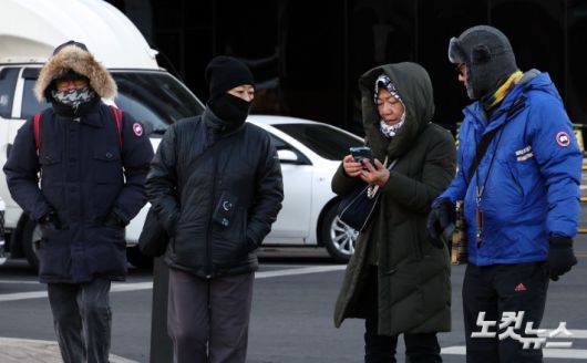절기상 가장 춥다는 '대한'인 20일 서울 아침기온이 영하 11도까지 떨어지는 등 한파주의보가 내려진 가운데 서울시청 인근에서 외국인들이 두꺼운 옷을 입고 발걸음을 재촉하고 있다.