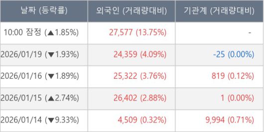 [표] 외국인ㆍ기관 순매매량 (단위 주)