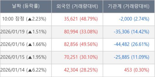 ※ 사모펀드 등 일부 기관의 순매매량은 표시되지 않음