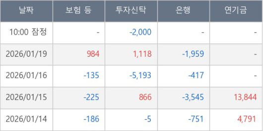 [표] 주요 기관별 순매매량 (단위 주)