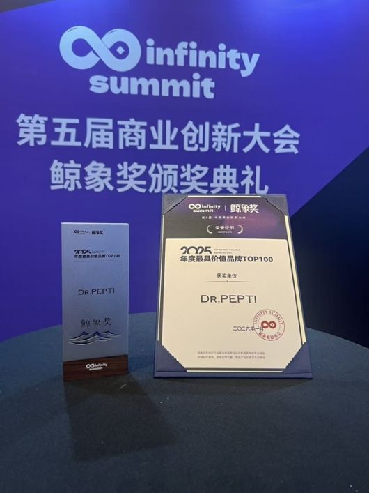 ㈜제이앤코슈(대표 장유호)의 글로벌 안티에이징 스킨케어 브랜드 닥터펩티(DR.PEPTI) 중국 법인이 중국 신소비 트렌드 분석 기관 ‘소비기(消费纪, New Consumption Era)’가 주관한 ‘Infinity Awards: 2025 Top 100 Valuable Brands(鲸象·百强)’에 선정됐다.
