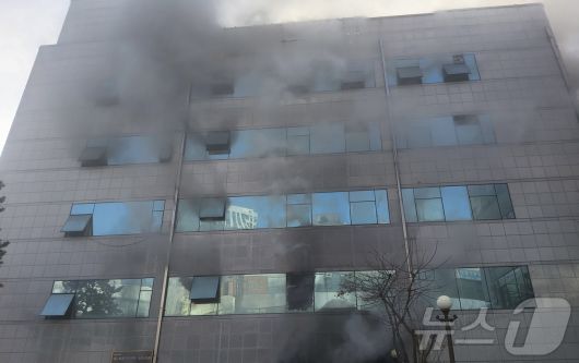 (부천=뉴스1) 김기현 기자 = 20일 오전 8시 57분 경기 부천시 원미구 중동 KB국민은행 신중동역종합금융센터에서 불이 나 연기가 피어오르고 있다. (경기도소방재난본부 제공. 재판매 및 DB 금지) 2026.1.19/뉴스1kkh@news1.krCopyright ⓒ 뉴스1. All rights reserved. 무단 전재 및 재배포, AI학습 이용 금지.