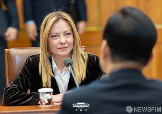 [서울=뉴스핌] 조르자 멜로니 이탈리아 총리가 지난 19일 오전 청와대에서 열린 정상회담 한-이탈리아 정상회담에 자리하고 있다. [사진=청와대] 2026.01.20 photo@newspim.com