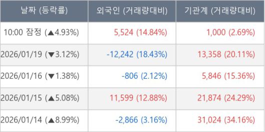 [표] 외국인ㆍ기관 순매매량 (단위 주)