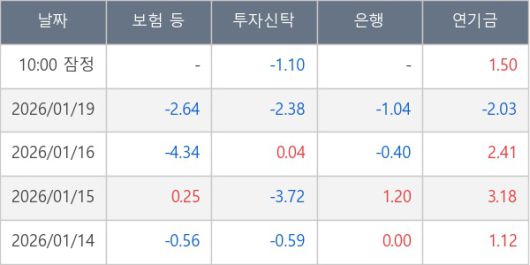 [표] 주요 기관별 순매매량 (단위 만주)