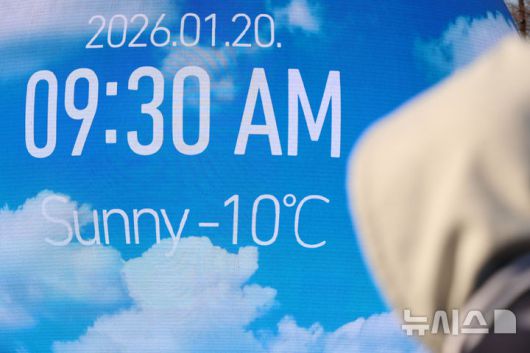 [서울=뉴시스] 권창회 기자 = 서울 날씨가 영하 13도까지 내려가는 등 전국에 강추위가 내려진 20일 오전 서울 송파구 석촌호수 인근 더스피어에 현재기온이 나오고 있다. 2026.01.20. kch0523@newsis.com |