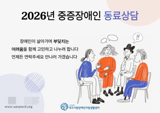 대구사람장애인자립생활센터는 올해 중증장애인 동료상담 참여자를 모집한다고 20일 밝혔다.