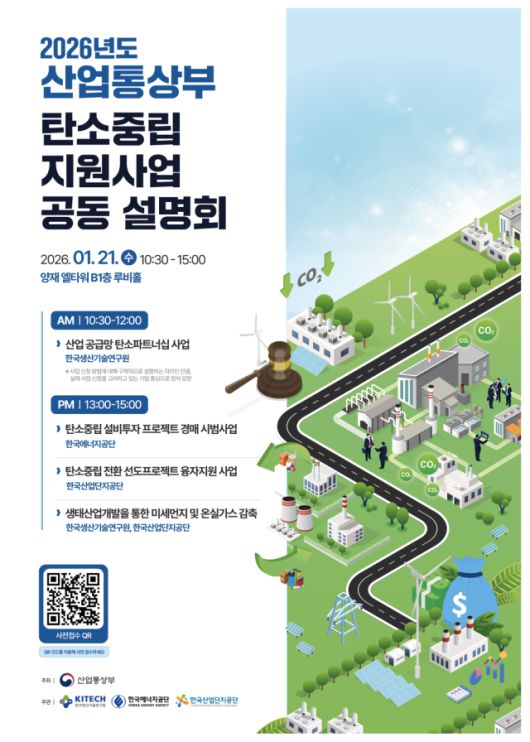한편, 산업부는 모집 첫날인 21일 서울 양재 엘타워에서 ‘2026년도 산업부 탄소중립 지원사업 공동 설명회’를 열고 경매사업을 포함한 주요 4개 지원사업의 입찰 절차와 유의사항을 안내할 예정이다.