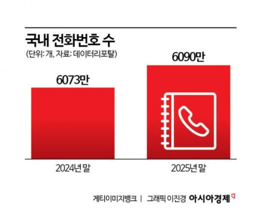 20일 데이터 분석 플랫폼 데이터리포털의 보고서에 따르면 지난해 말 기준 한국의 휴대전화 번호 수는 약 6090만개로, 2024년 말 대비 16만9000여개 증가했다. 한국 인구 대비 118%가 휴대전화 번호를 가지고 있어 인당 약 1.2개의 번호를 사용하는 꼴이다.