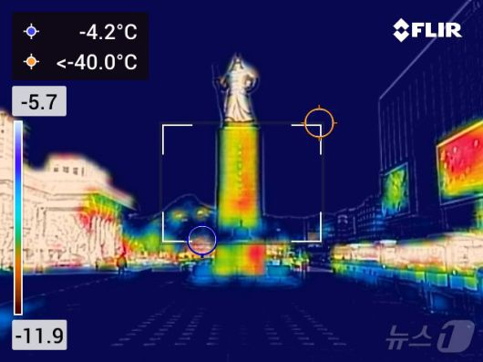 (서울=뉴스1) 김진환 기자 = 절기상 대한(大寒)인 20일 오전 서울 광화문광장이 한산한 모습을 보이고 있다. 열화상카메라는 온도가 높을수록 붉은색으로 나타나며 상대적으로 온도가 낮은 곳은 푸른색으로 나타난다. (열화상카메라 촬영) 2026.1.20/뉴스1